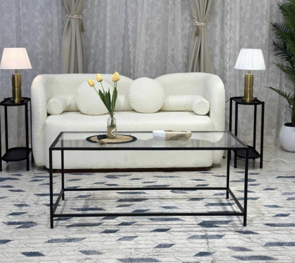 طاولة ضيافة حديد أسود زجاج شفاف :