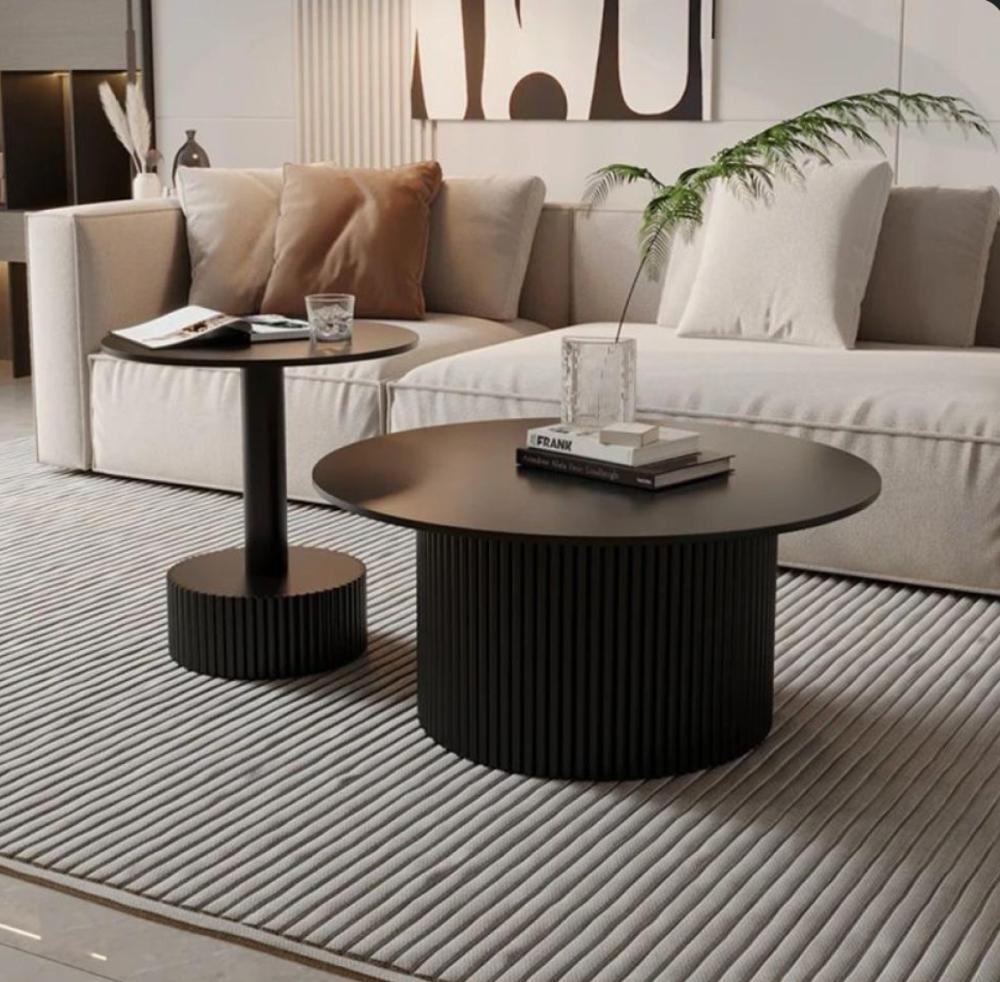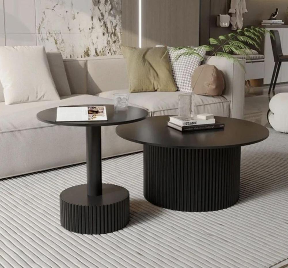 طقم الطاولات هذا يجسد الأناقة والبساطة بتصميمه العصري والمتناسق، ليكون الخيار المثالي لإضفاء لمسة فريدة على غرفة المعيشة أو مساحة الضيافة. يتكون الطقم من طاولتين دائريتين بأحجام مختلفة، مصنوعتين من مواد عالية الجودة مع تشطيبات بلون أسود مات يمنح الطقم طابعًا عصريًا وراقياً.