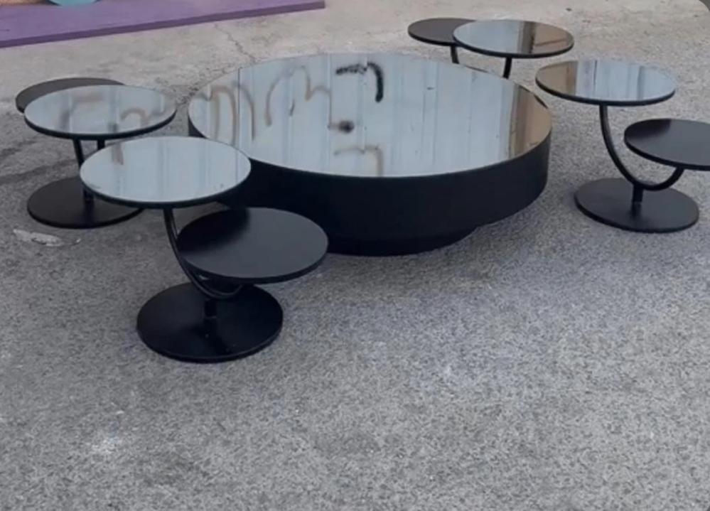 طقم طاولات مكون من : طاولة رئيسية و ٤ حبات طاولات خدمة دورين