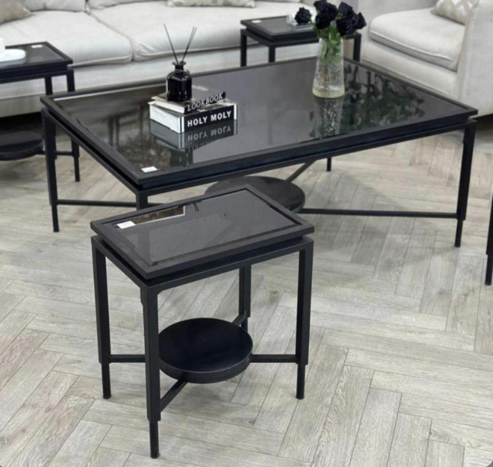 طقم طاولات ضيافة دورين سطح زجاج أسود :