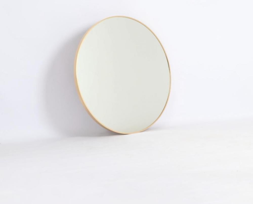 مرآة بإطار ذهبي مع تفاصيل مميزة تجمع بين التصميم العصري والجودة العالية لإضفاء لمسة أنيقة على المساحة المعيشية في منزلك.
